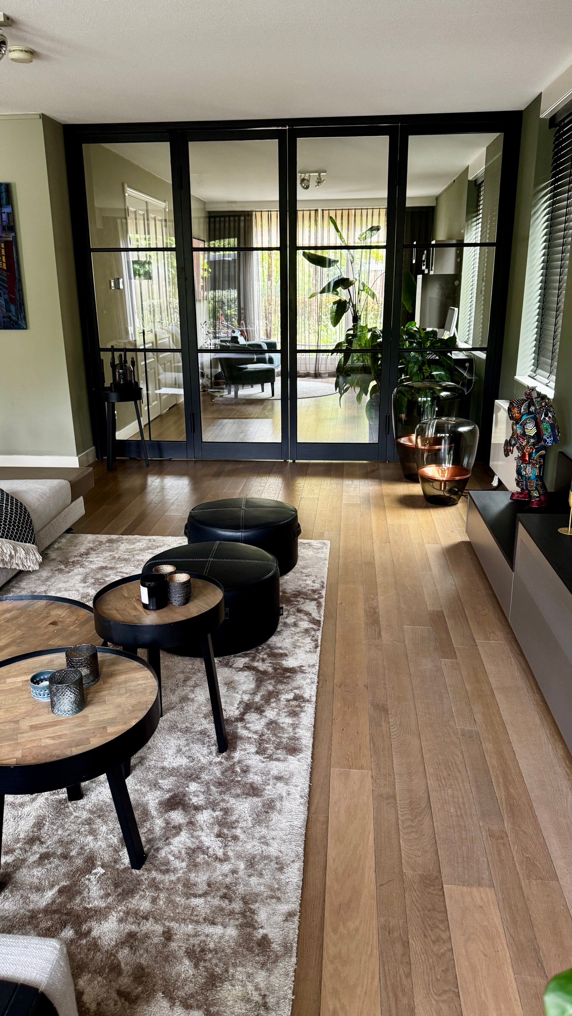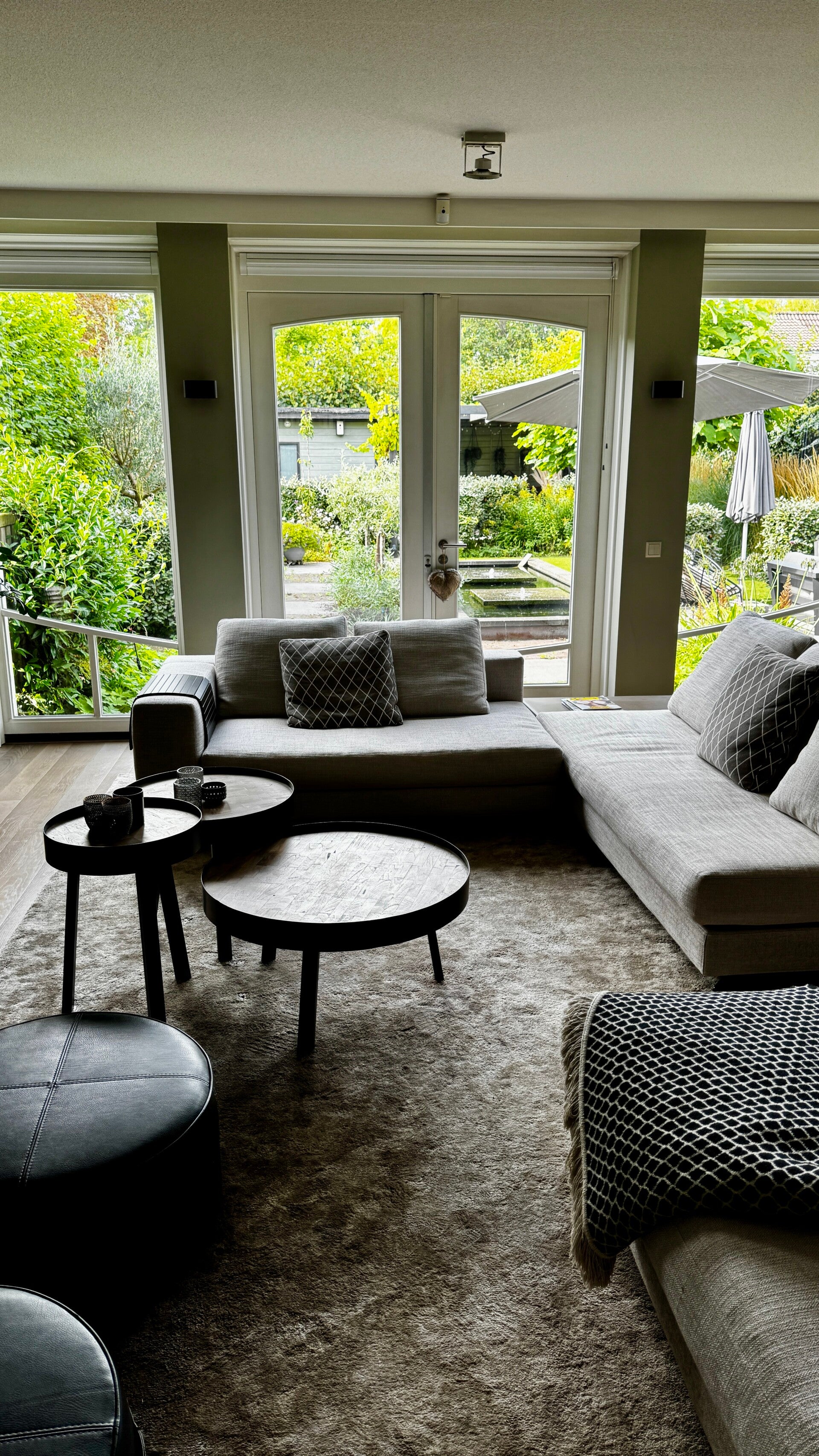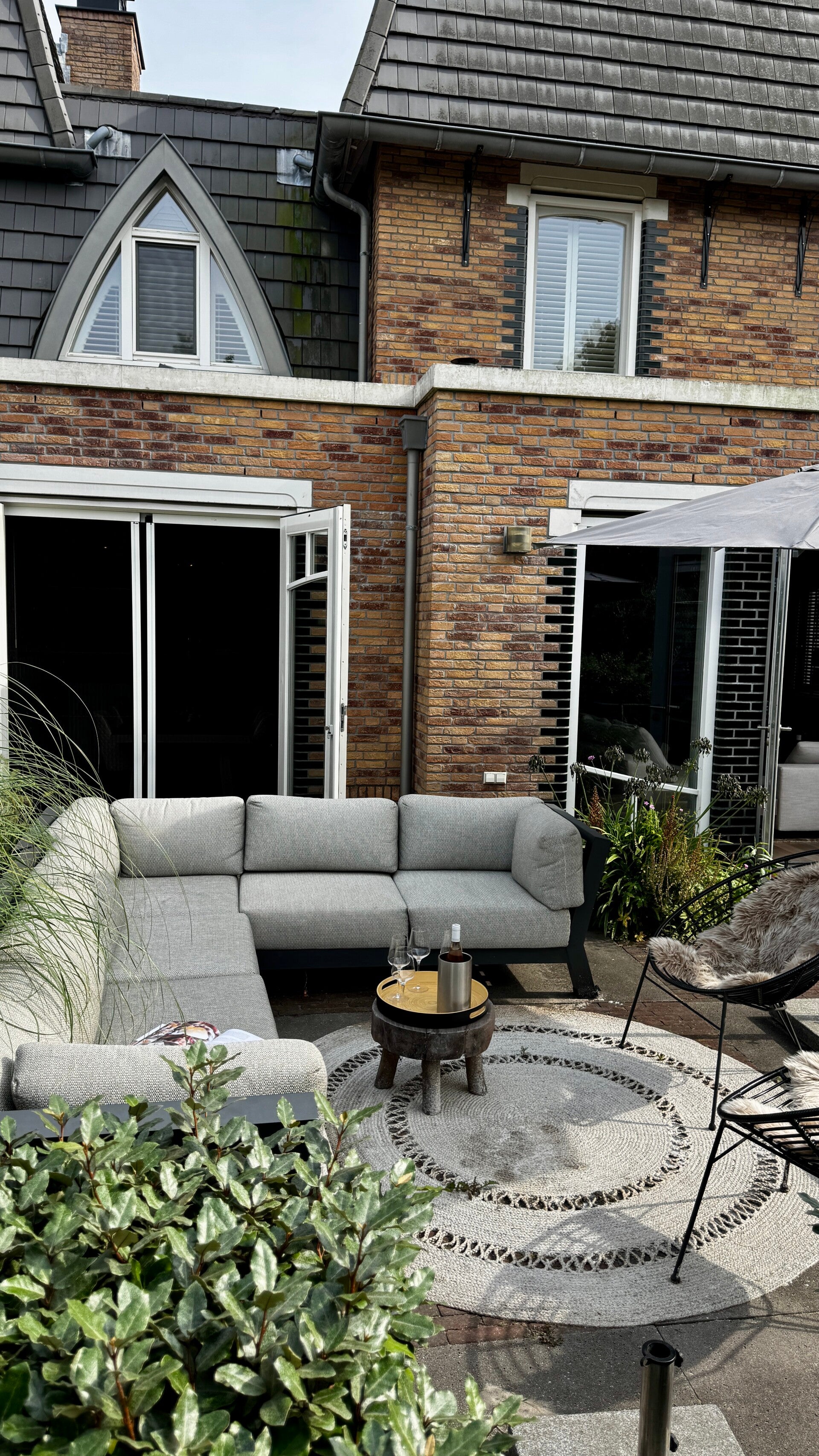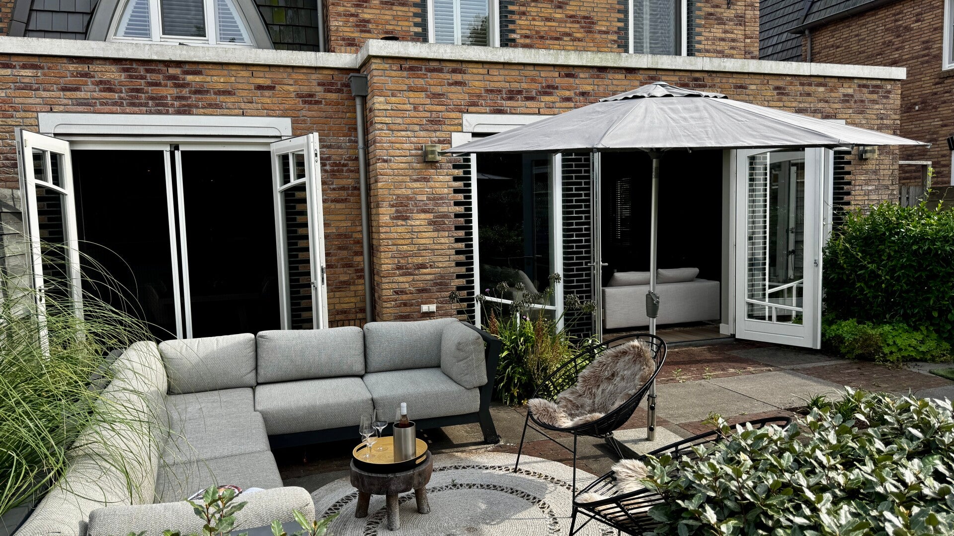 De openslaande deuren geven zowel vanuit de woonkamer als keuken toegang tot de tuin.